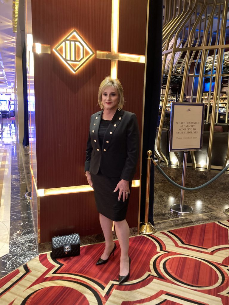 A couple of years ago my BFF Ashley and I were meeting for dinner in Las Vegas at Del Monaco Steakhouse. I made the reservation and she was running a little late so I went ahead and picked up the reservation. The hostess was seating people and there wasn’t anyone at her station when I arrived so I waited. There was a big event at the convention center at the Venetian and lots of well dressed people were arriving behind me. Years ago I would have been very nervous in that situation but now I am confident and at ease. When a group of people came up behind me I glanced behind me and exchanged smiles with them except one woman on my right. She was just looking at me expressionless. I hoped she was checking me out like women do looking at my outfit. She was very attractive in a dress and heels.